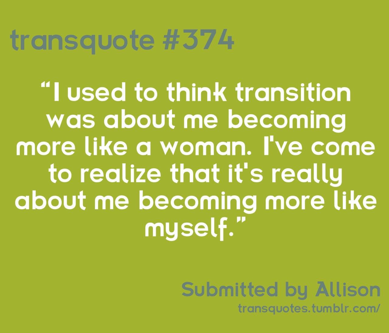 “I used to think transition was about me becoming more like a woman. I’ve come to realize that it’s really about me becoming more like myself.” Submitted by Allison