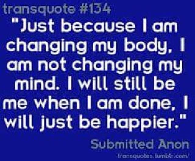 “Just because I am changing my body, I am not changing my mind. I will still be me when I am done, I will just be happier.” Submitted Anon